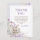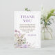 Tarjeta de agradecimiento de cumpleaños de conejito de flores silvestres moradas