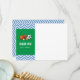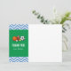 Tarjeta de agradecimiento de fiesta de cumpleaños con tema de deporte de todos los estrellas con chevron azul y blanco y pancarta verde