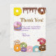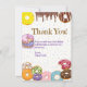 Agradece a tus invitados por celebrar con esta encantadora y dulce tarjeta de agradecimiento con tema de donas, perfecta para cualquier edad.