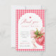 Di gracias de la manera más dulce con esta tarjeta de agradecimiento de gingham rojo, que presenta fresas en acuarela, escritura suave y un detalle de lazo rosa. Una combinación perfecta para su tema de cumpleaños de primer año de baya.