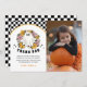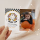 Agrega un toque de encanto retro a tu celebración de Halloween con esta tarjeta de agradecimiento groovy, que presenta un fantasma lindo con flores y un ambiente vintage divertido — perfecto para la fiesta de cumpleaños espeluznante de una niña.