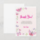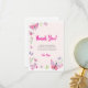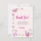 Envía una dulce nota de agradecimiento después del cumpleaños con tema de mariposas de tu hijo con esta tarjeta de agradecimiento ilustrada con hermosas ilustraciones. Con mariposas dibujadas a mano, tonos rosados suaves y texto editable, esta tarjeta hace que sea fácil personalizar tu mensaje. Perfecta para cumpleaños de niñas, celebraciones de primavera o cualquier tema de fiesta caprichosa.