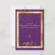 Color de fondo púrpura y marco dorado. Con lluvia de confeti dorado. En el frente, texto manuscrito y: ¡Gracias! y adorno floral dorado.