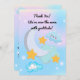 Esta adorable tarjeta de agradecimiento de cumpleaños "Dos a la Luna" presenta un tema soñador de espacio exterior con nubes pastel suaves, estrellas brillantes y una luna sonriente.