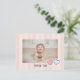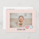 Un diseño simple de tarjeta de agradecimiento de cumpleaños con un fondo a rayas y corazones pequeños delante.