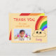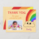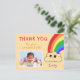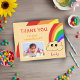 Tarjeta de agradecimiento de cumpleaños Kawaii para niños. Tarjeta de agradecimiento de cumpleaños para niños con foto, nombre y nota de agradecimiento. Puedes personalizar fácilmente la tarjeta con tu foto y nombre favoritos. También puedes cambiar el texto. Esta linda tarjeta de agradecimiento tiene una nube kawaii con el arcoíris en diferentes colores sobre un fondo amarillo. A los niños les encantará esta linda tarjeta.