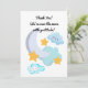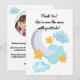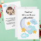 Perfecta para compartir su gratitud con familiares y amigos que ayudaron a hacer que la celebración sea cósmica y memorable, esta tarjeta agrega un toque personalizado y conmovedor con la foto y el nombre de su pequeño astronauta.