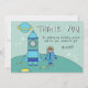 Tarjeta de agradecimiento de cumpleaños para niño de astronauta con cohete en planeta en el espacio. Niño astronauta en un planeta con una nave espacial. Personaliza la tarjeta con tu nombre y texto. Ideal como tarjeta de agradecimiento de cumpleaños para niños.