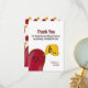 Esta tarjeta de agradecimiento de cumpleaños es perfecta para la fiesta de cumpleaños de los niños. El diseño presenta ilustraciones de un pequeño fantasma rojo con elementos de escritura moderna personalizables. Crea tu propia tarjeta de agradecimiento para el cumpleaños de tus hijos simplemente personalizando esta plantilla en línea.