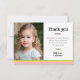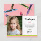 Tarjeta de agradecimiento a doble cara que coincide con las otras piezas de esta colección. Barras rosadas, amarillas y verdes en la parte inferior, con crayones en los mismos colores. Una dulce foto de cumpleaños y un mensaje especial calentarán el corazón del destinatario.