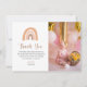 Agradece a todos tus invitados de cumpleaños con esta adorable tarjeta de agradecimiento con foto boho arcoíris pastel rosa. Personalízala con tu propia foto y texto.