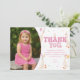 Envía una nota juguetona de agradecimiento con esta tarjeta de agradecimiento Silly Goose. Con gansos caprichosos con sombreros de fiesta, letras de burbuja retro y espacio para la foto de tu hijo, este diseño es la forma perfecta de agradecer a los invitados por celebrar un cumpleaños especial. Divertido, moderno y lleno de encanto, es un recuerdo que la familia y los amigos atesorarán.