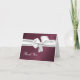Elegante tarjeta de agradecimiento de boda, realizada en un diseño de damasco granate, con gráficos elegantes de una cinta de satén blanco y lazo, en el medio. El texto en letra cursiva blanca dice Gracias. Personalice el texto dentro y en la parte frontal según sus necesidades. Hermosa manera de enviar sus agradecimientos después de la boda.