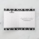 Esta tarjeta de agradecimiento de damasco negro y blanco coincide con la invitación y otros artículos que se muestran a continuación. Si necesita algún otro artículo coincidente, por favor envíeme un correo electrónico a niteowlstudio@gmail.com con su solicitud.