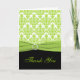 Esta tarjeta de agradecimiento de damasco negro y verde coincide con la invitación y otros artículos que se muestran a continuación.