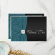 ** Tenga en cuenta que la cinta y las joyas son imágenes impresas y no son reales. Esta dramática tarjeta monogramada verde azulada y negra de damasco floral de agradecimiento con cinta de FAUX y medallón con joyas coincide con la invitación a la boda que se muestra a continuación. También hay una tarjeta de agradecimiento al estilo de la tarjeta de felicitación, si lo prefieres. Las opciones de texto y papel son totalmente personalizables. Si necesita algún artículo que coincida, como tarjetas de número de tabla, tarjetas de lugar, programas de boda, etc., envíe su solicitud a niteowlstudio@gmail.com.