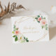 Esta tarjeta de agradecimiento de despedida de soltera floral geométrica dorada es perfecta para una despedida de soltera moderna. El diseño presenta hermosas rosas blancas, rosadas y rosadas claras pintadas a mano y un toque de vegetación, adornando marcos geométricos dorados, inspirando belleza artística. Estas tarjetas se pueden utilizar para una boda, despedida de soltera o cualquier evento especial.