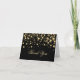 Tarjeta de agradecimiento de boda con confeti de efecto dorado sobre fondo negro