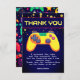 Personaliza tu propia tarjeta de agradecimiento de cumpleaños con temática gamer con este colorido diseño divertido.
