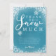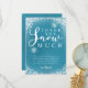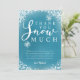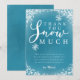 Linda tarjeta de agradecimiento de cumpleaños con tema de nieve de invierno en azul turquesa con nieve y copos de nieve blancos brillantes con un texto de tipografía que dice "gracias muchísimo". El mensaje editable agradece a los invitados por venir a la fiesta y por el regalo. Ideal para el cumpleaños número 1 de un niño en la temporada de Navidad.
