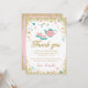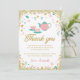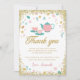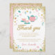 Tarjeta de agradecimiento de fiesta de té con brillo dorado rosa