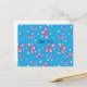Envía una nota brillante y alegre de agradecimiento con esta encantadora tarjeta postal de agradecimiento que presenta flores de tres pétalos dibujadas a mano en tonos rosa y púrpura. El trabajo de línea negra juguetona y los puntos blancos dispersos bailan sobre un fondo azul suave, creando un diseño ligero y reflexivo que se siente personal y pulido.