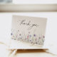 Una tarjeta de agradecimiento con tema de flores silvestres, perfecta para cualquiera que ame la belleza de la naturaleza. Los tonos suaves de púrpura y las delicadas flores de campo crean un ambiente romántico y caprichoso que seguramente impresionará a tus invitados.