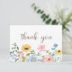 Hermosa tarjeta de agradecimiento de flores silvestres que presenta hermosas flores de prado pintadas con acuarela, hechas en una paleta de colores pastel. ¡Este diseño floral es perfecto para crear papelería con tema de jardín! Hazlo tuyo con facilidad introduciendo tu información. Una elegante y delicada plantilla de tarjeta floral para hacer que la ocasión sea mucho más especial.
