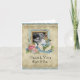 Tarjeta de agradecimiento de foto de boda con marco de imagen, rosas, flores, alas de palomas, mariposas, victoriana.