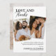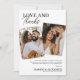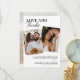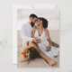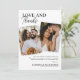 Elegante tarjeta de agradecimiento de boda con un fondo blanco simple, 2 fotos en la parte delantera de los recién casados, un mensaje de apreciación personalizado, sus nombres, fecha de boda y ubicación. Al revés hay una foto impresa completa de la pareja feliz.
