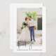 Tarjeta de agradecimiento con foto del día de la boda. Con fuentes modernas con su imagen resaltada en un fondo blanco variable. Mensaje personalizado en la parte posterior. Kimberly Brett.