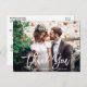 Tarjeta postal de agradecimiento de foto de boda con letra de pincel moderna - Letra blanca