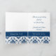 Hermosa tarjeta de agradecimiento de foto de boda de Damasco azul marino y blanco con monograma rosa, nombres y mensaje de agradecimiento impreso en el interior. También hay espacio para escribir a mano un agradecimiento a sus invitados. Puede cambiar los colores del texto y el fondo o contactar con luxuruyweddinginvitations@gmail.com para diferentes colores del patrón de damasco.