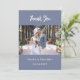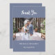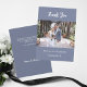 Celebre su día especial y exprese su gratitud con nuestras Tarjetas de Boda con Foto Personalizadas, elegantemente diseñadas con un sofisticado y trendy fondo azul polvoriento. Perfectas para compartir sus recuerdos de boda favoritos, estas tarjetas son elegantes y personales, ofreciendo una forma única de agradecer a sus invitados. Personalice y agregue su foto y nota de agradecimiento. Texto blanco.