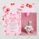 Tarjeta de agradecimiento de foto de cumpleaños de cereza Coquette rosa