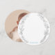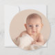 Un simple diseño de dibujo lineal de hojas de limón y olivo. Acentuado con una cruz azul. La parte posterior de la tarjeta contiene una foto de su hijo. Parte de la "Colección George".