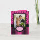 Esta tarjeta de agradecimiento de foto floral a rayas rosa y negro coincide con la invitación de boda que se muestra a continuación.