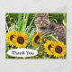 Tarjeta de agradecimiento de gato lindo y girasole