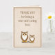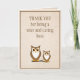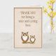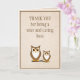 ¡Esta sabia tarjeta de búho es perfecta para tu sabio jefe, supervisor o gerente! Opción para editar el texto de esta tarjeta para un título/rol/nombre específico, y agregar su mensaje interno. Los adorables búhos aparecen en el interior de la tarjeta, así como en el frente.