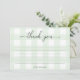 Tarjeta de agradecimiento de gingham verde menta