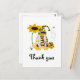 Una tarjeta de agradecimiento/tarjeta postal supercute para mostrar su gratitud. Cuenta con el popularísimo gnomo abeja bumble lady, completo con tarro de miel goteante, girasoles, margarita y abejas zumbadoras. Diseño divertido con texto personalizable.