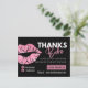 Esta tarjeta de agradecimiento tiene un glamuroso toque femenino con un esquema de color rosa que es perfecto para cualquier negocio en un nicho de belleza y moda. Una tarjeta de agradecimiento transmite atención y sinceridad a sus clientes y ayuda a construir su relación con ellos. Hace que los clientes se sientan especiales y valorados, lo que aumenta la lealtad a su negocio.