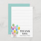 Perfecta para un niño o niña joven, esta tarjeta de agradecimiento plana y pequeña tiene líneas sutiles para ayudar a los nuevos escritores a mantener sus líneas rectas y les da espacio para escribir un simple mensaje de agradecimiento por los regalos recibidos después de su celebración de cumpleaños. Los globos de cumpleaños pastel bonitos añaden diversión.