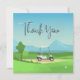 Tarjeta de agradecimiento de golf con carrito de golf en verde