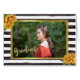 Tarjeta de agradecimiento de graduación con franjas acuáticas de color blanco y negro y rosas de oro