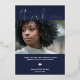 Estas elegantes tarjetas de agradecimiento a tu graduación incluyen dos fotos del graduado, con una tipografía moderna de escritura de Relieve metalizado plateado y una imagen de Relieve metalizado plateado de una gorra de graduación y una tassel en un fondo azul marino oscuro.
