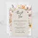 ¿Listo para celebrar con estilo? Nuestra tarjeta de agradecimiento de graduación con flores silvestres boho está llena de encanto floral. Cuenta con un diseño floral de acuarela, 1 foto en la parte posterior y tipografía moderna. Personaliza agregando tu foto, nombre, escuela y otros detalles. Encuentra invitaciones a juego en mi tienda. Fotos de prostooleh / Freepik.