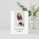 Personalice esta moderna tarjeta de agradecimiento de graduación por delante y por detrás con su propio texto y fotos. Características de un diseño minimalista de una foto en la parte delantera con texto gris oscuro y acento de graduación de corazón garabateado. Amplio espacio en la parte posterior para personalizar aún más con su propio mensaje y nombre acentuado con una gorra de graduación negra. Crédito de la foto: imágenes adaptadas de Pexels.com por Maryia Plashchynskay