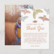 Expresa tu gratitud por la generosidad de familiares y amigos con nuestra tarjeta de agradecimiento de graduación chic y boho. Adornada con hermosos colores boho y arte popular dibujado a mano, esta tarjeta es un perfecto símbolo de aprecio. Agrega tu foto favorita de tu graduado en la parte posterior de la tarjeta para un recuerdo dulce. Cada tarjeta presenta gorras de graduación lindas y pájaros volando, simbolizando el emocionante viaje que se avecina. Con amplio espacio para un mensaje de agradecimiento personalizado y firma, es una forma elegante y única de mostrar tu gratitud. Celebra este hito con un toque moderno en la tarjeta de agradecimiento tradicional.
