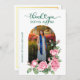 Tarjeta de agradecimiento de graduación con foto del jardín de rosas.